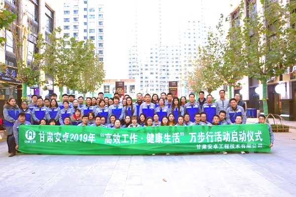 11月20日,甘肅安卓工程技術(shù)有限公司組織開展2019年“高效工作?健康生活”萬步行活動每日萬步行活動啟動儀式。集中展示了安卓人奮發(fā)有為、銳意進取的精神面貌和風(fēng)采。