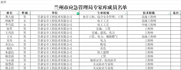 • 公司新聞 | 2023 年蘭州市應急管理專家?guī)旃?,甘肅安卓共計14人入選!
