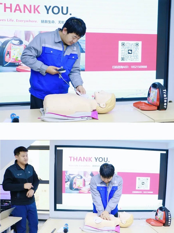 在理論知識的講解之后,參訓(xùn)員工進(jìn)行了實(shí)踐操作。通過講師耐心地指導(dǎo)其操作步驟,確保每個(gè)員工都能熟練掌握AED的使用技巧。