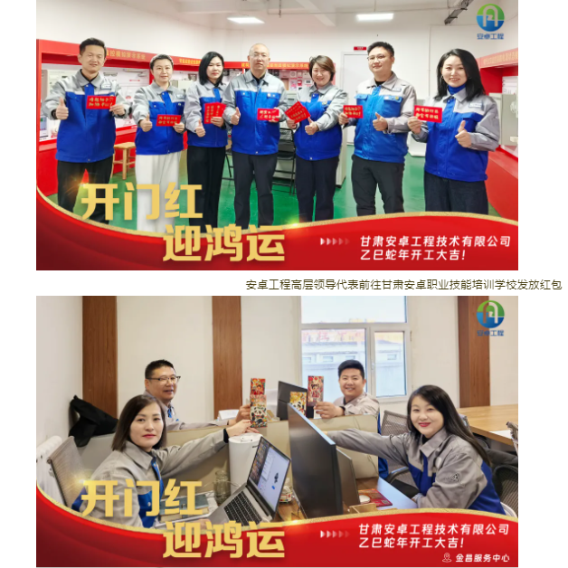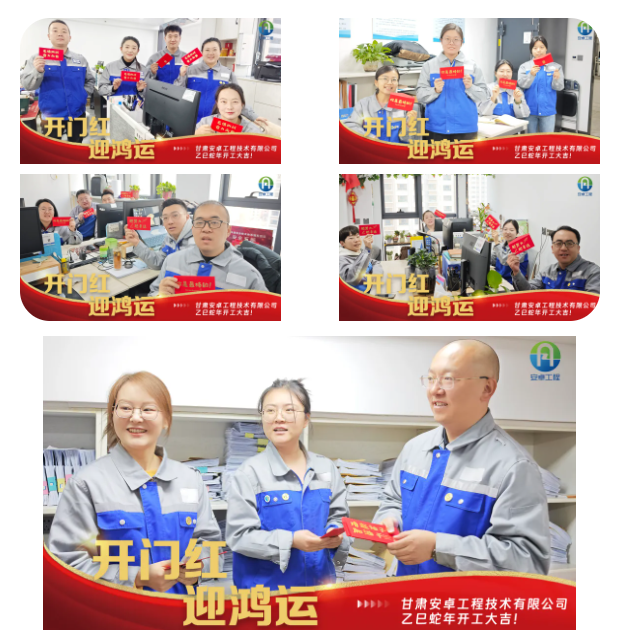 2月10日,正月十三,在這個洋溢著喜慶與祥和的美好日子里,甘肅安卓工程技術(shù)有限公司迎來了充滿生機(jī)與活力的開工大吉。全體員工精神抖擻,以踔厲奮發(fā)、篤行不怠的昂揚姿態(tài),滿懷激情地迎接這一開工儀式,共同翻開了蛇年的嶄新篇章。公司董事長龔復(fù)學(xué)、副董事長田苗、總經(jīng)理趙童潔、事業(yè)合伙人代表等高層領(lǐng)導(dǎo)親臨每一間辦公室,為員工送上“開門紅”紅包,寓意新的一年紅紅火火、福氣滿滿。