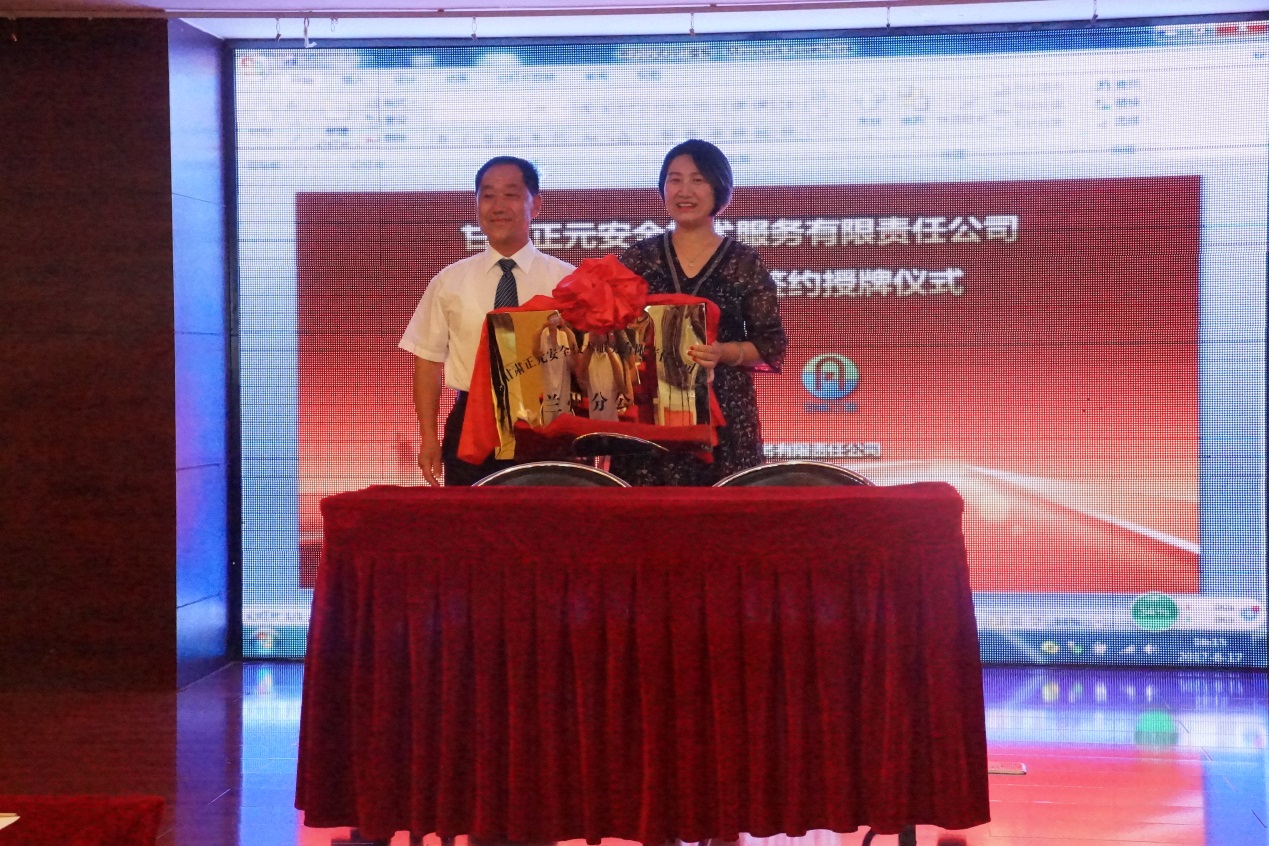 第二項由田苗女士作為甘肅正元安全技術服務有限責任公司蘭州分公司負責人與甘肅正元董事長鄭孝先生簽訂協(xié)議書,并進行了甘肅正元蘭州分公司的授牌剪彩儀式。