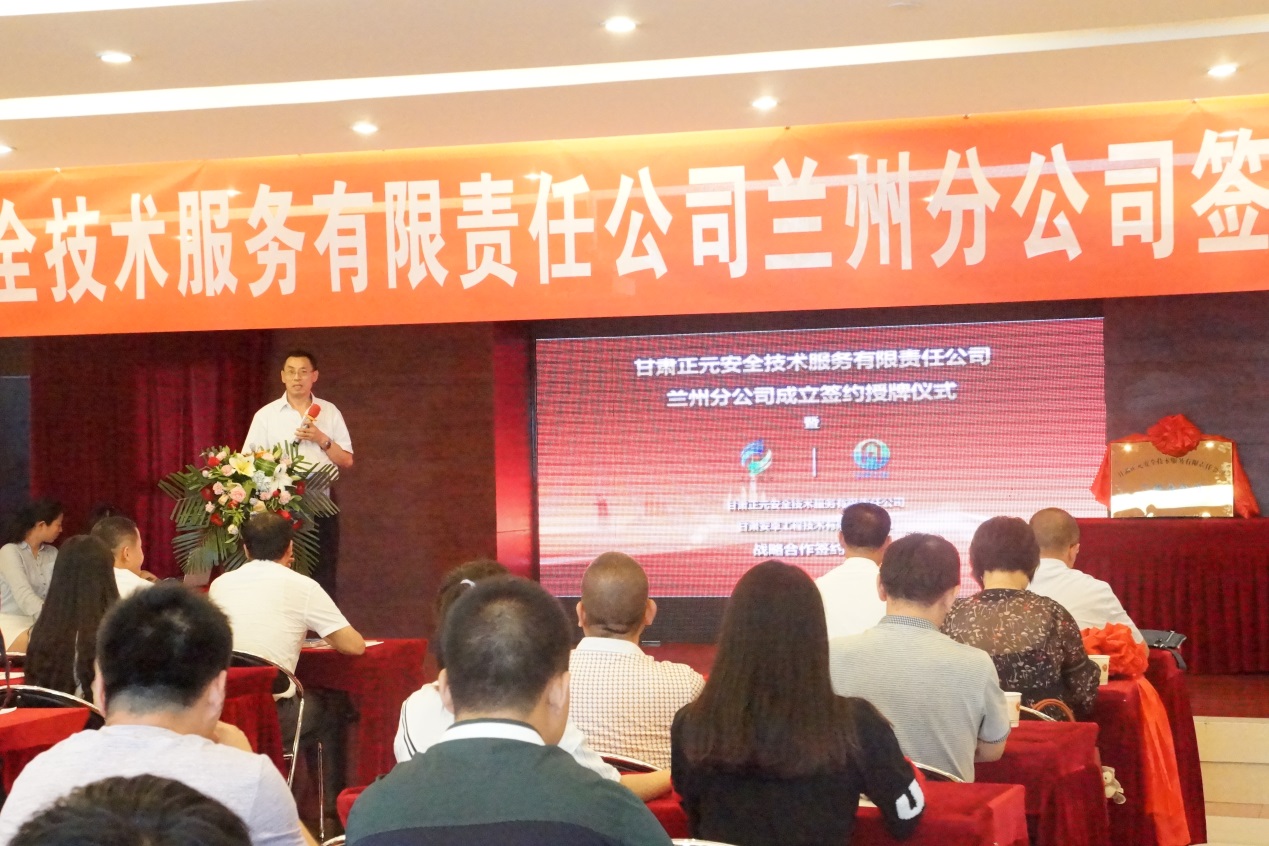 8月17日(周四)下午“甘肅正元安全技術服務有限責任公司蘭州分公司成立簽約授牌儀式暨甘肅正元安全技術服務有限責任公司與甘肅安卓工程技術有限公司戰(zhàn)略合作簽約儀式”在蘭州市亞歐大酒店隆重舉行。